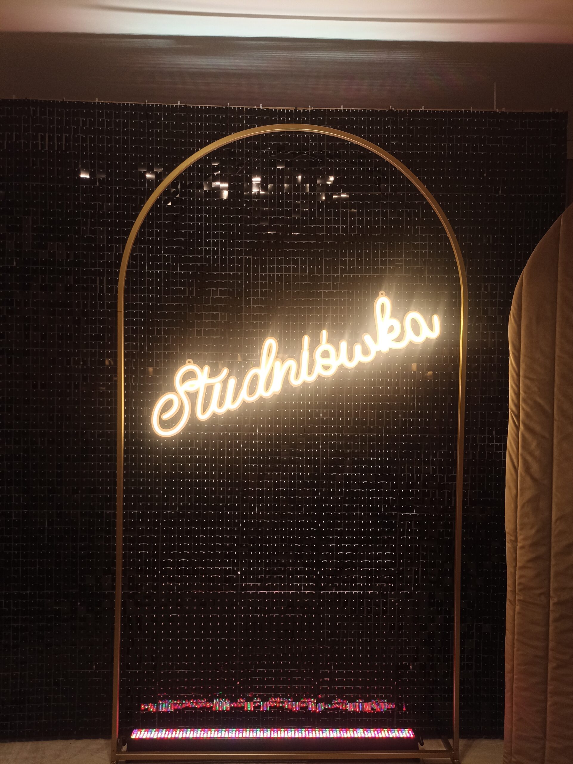Oferujemy wypożyczenie efektownego napisu LED „STUDNIÓWKA”, który doskonale podkreśli wyjątkowy charakter tego jedynego w swoim rodzaju balu. Stylowe, jasne światło LED tworzy niepowtarzalny klimat i stanowi idealne tło do pamiątkowych zdjęć.