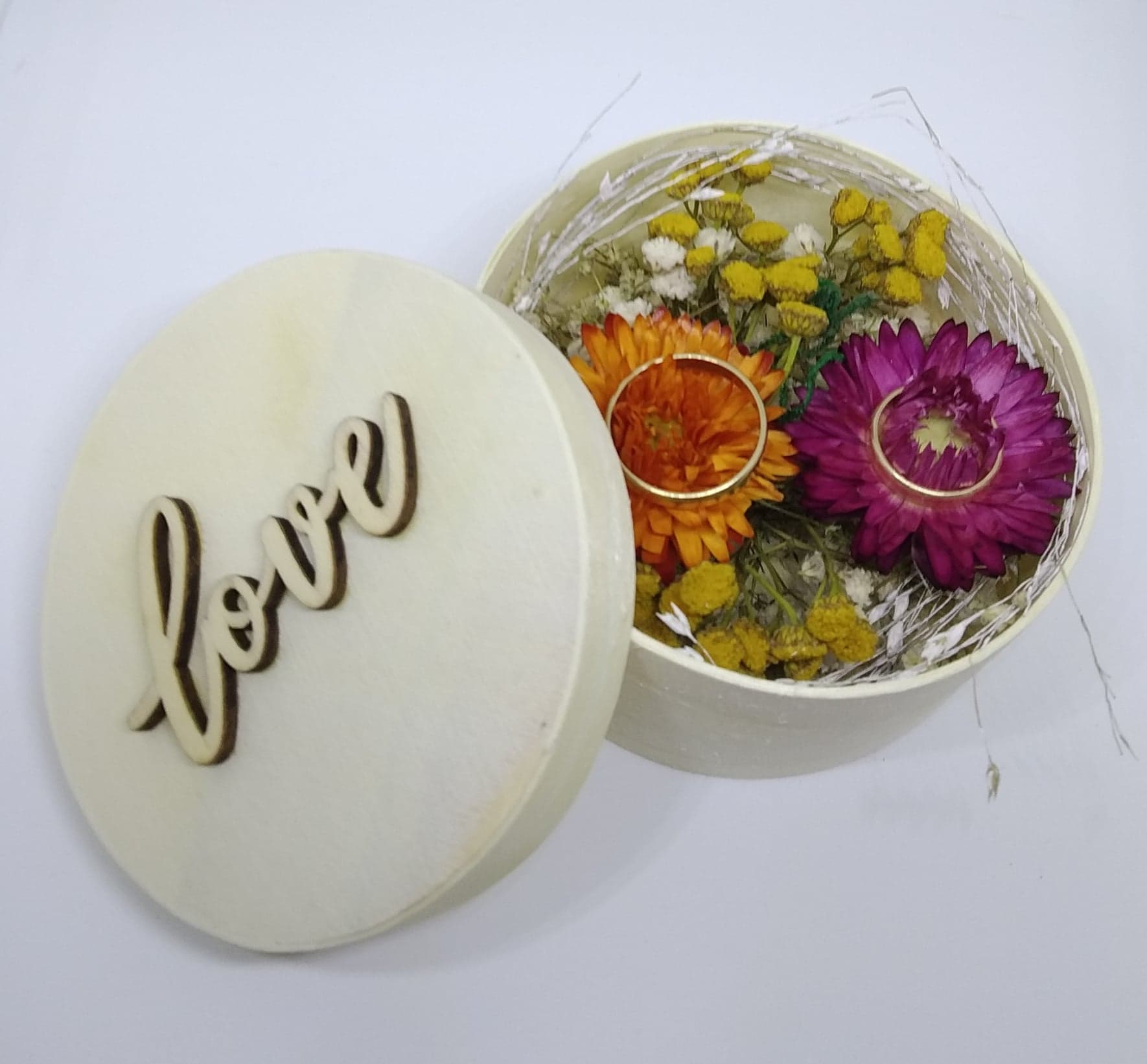Drewniane pudełko na obrączki okrągłe -drewniane.