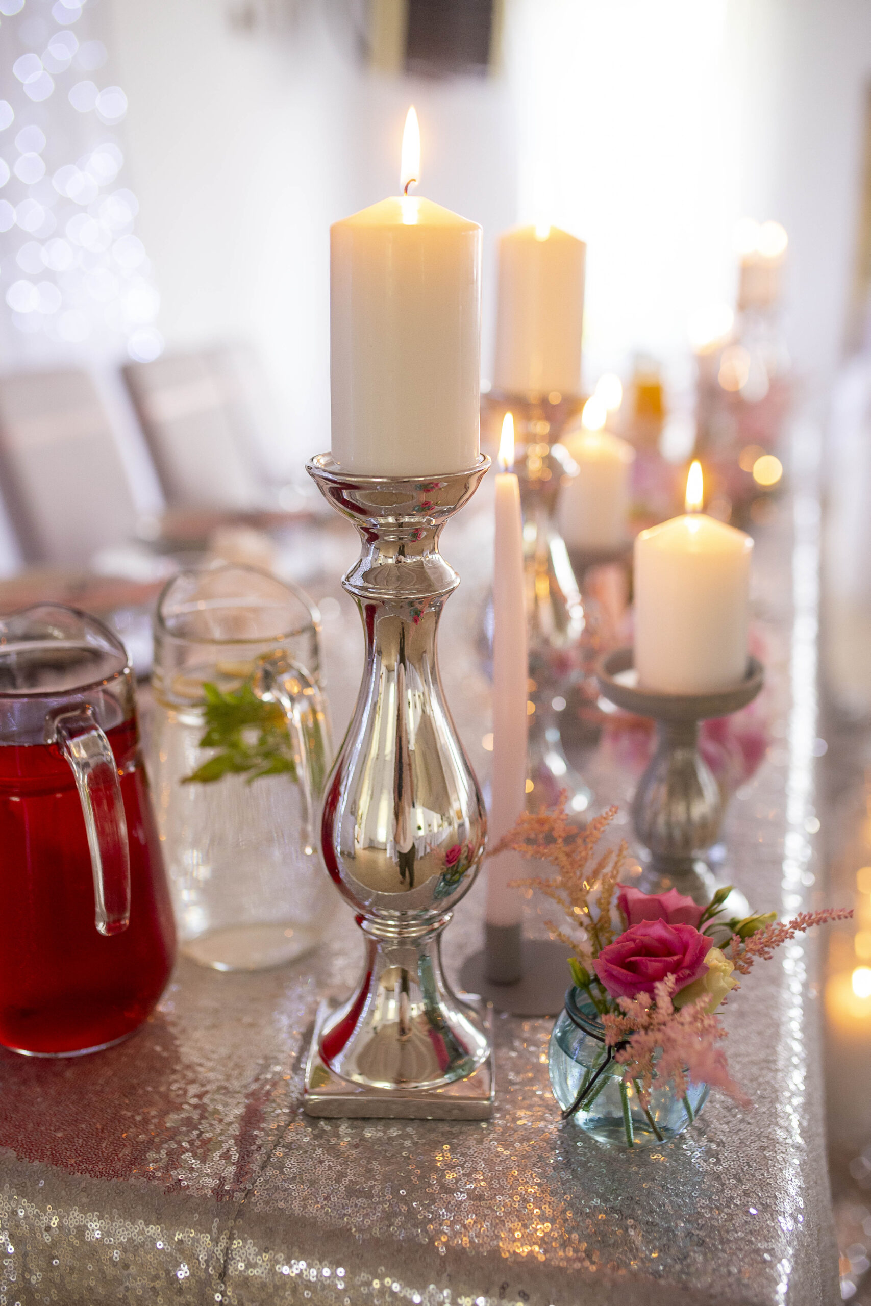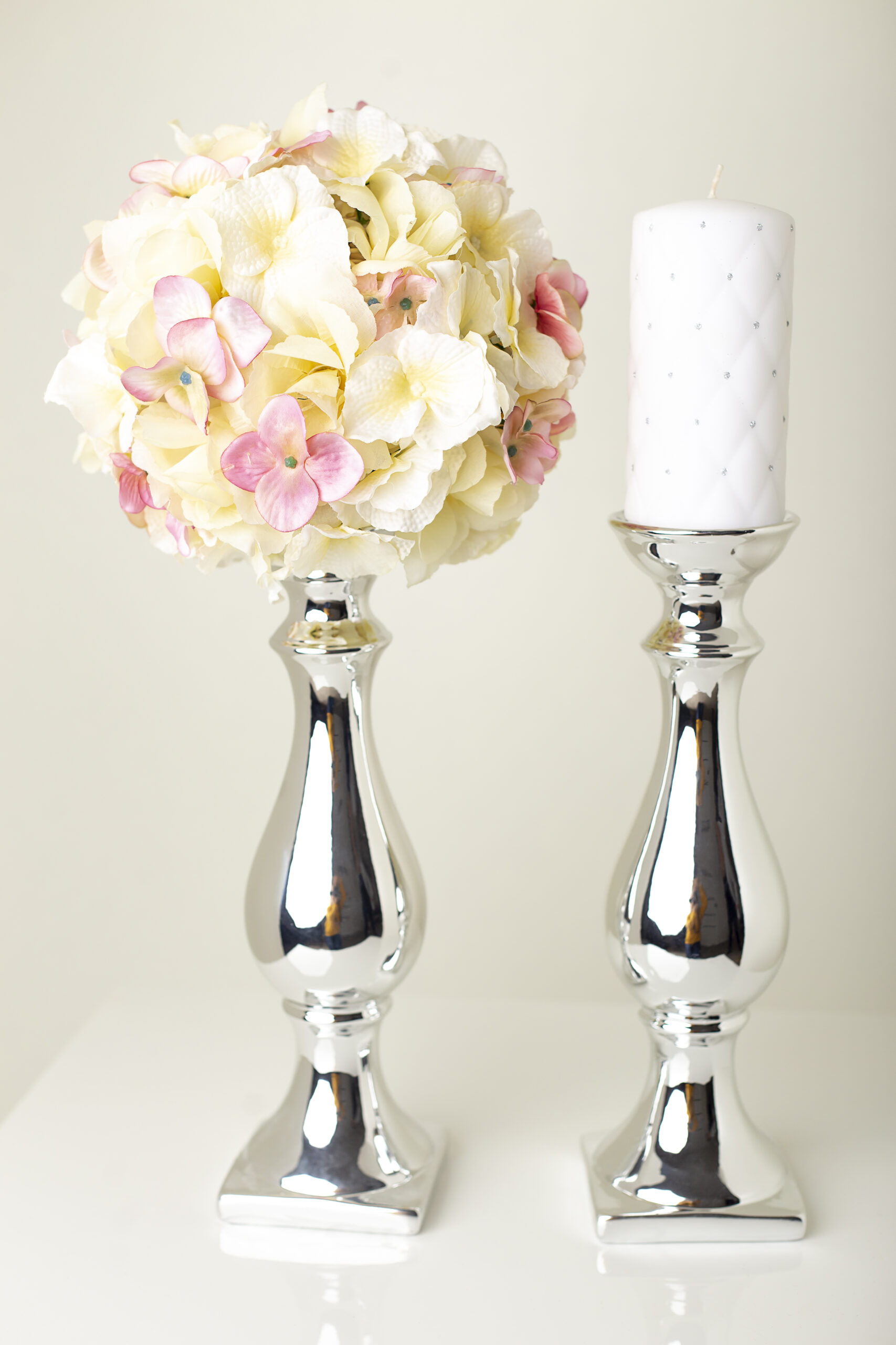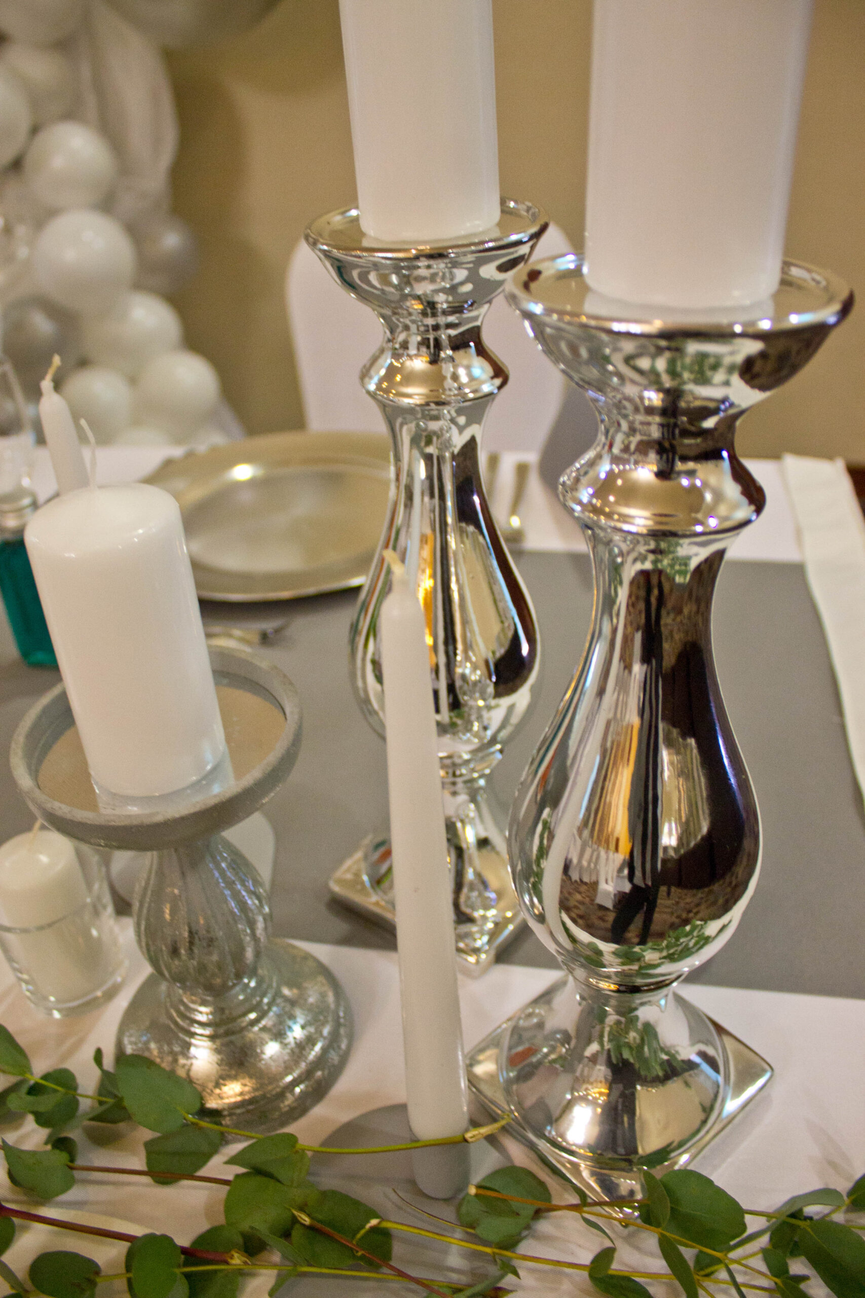 Świecznik / stojak – srebrny lustrzany.