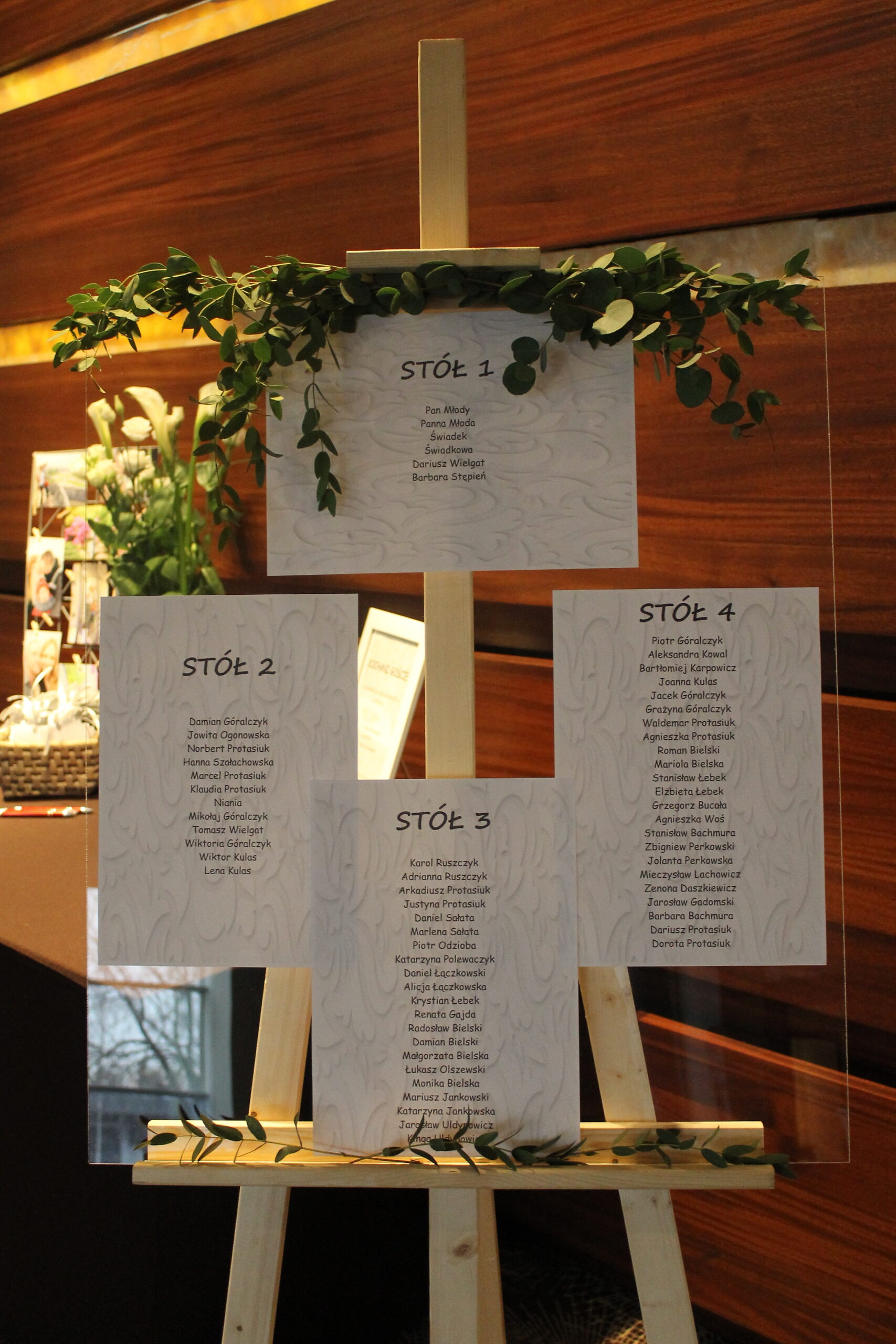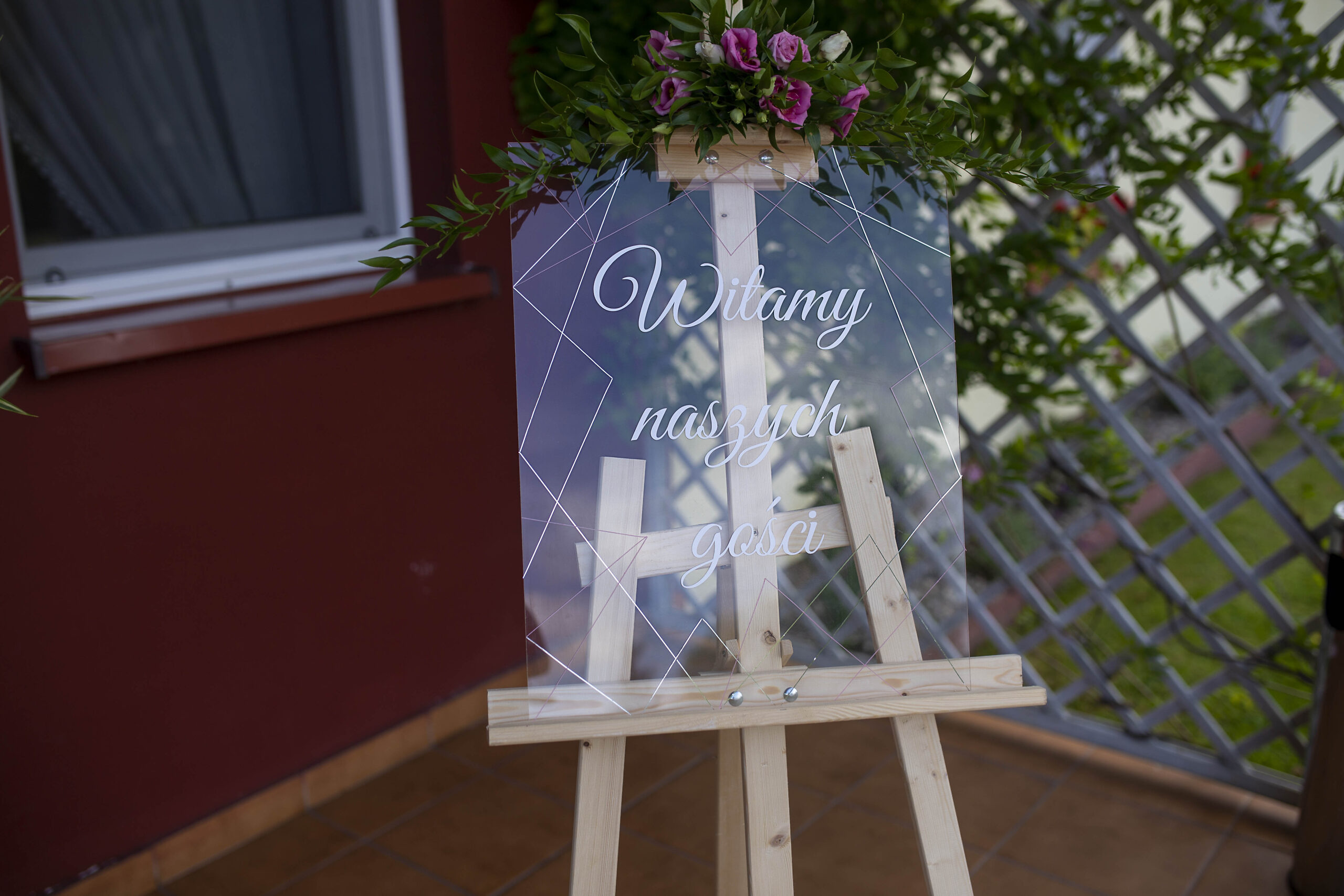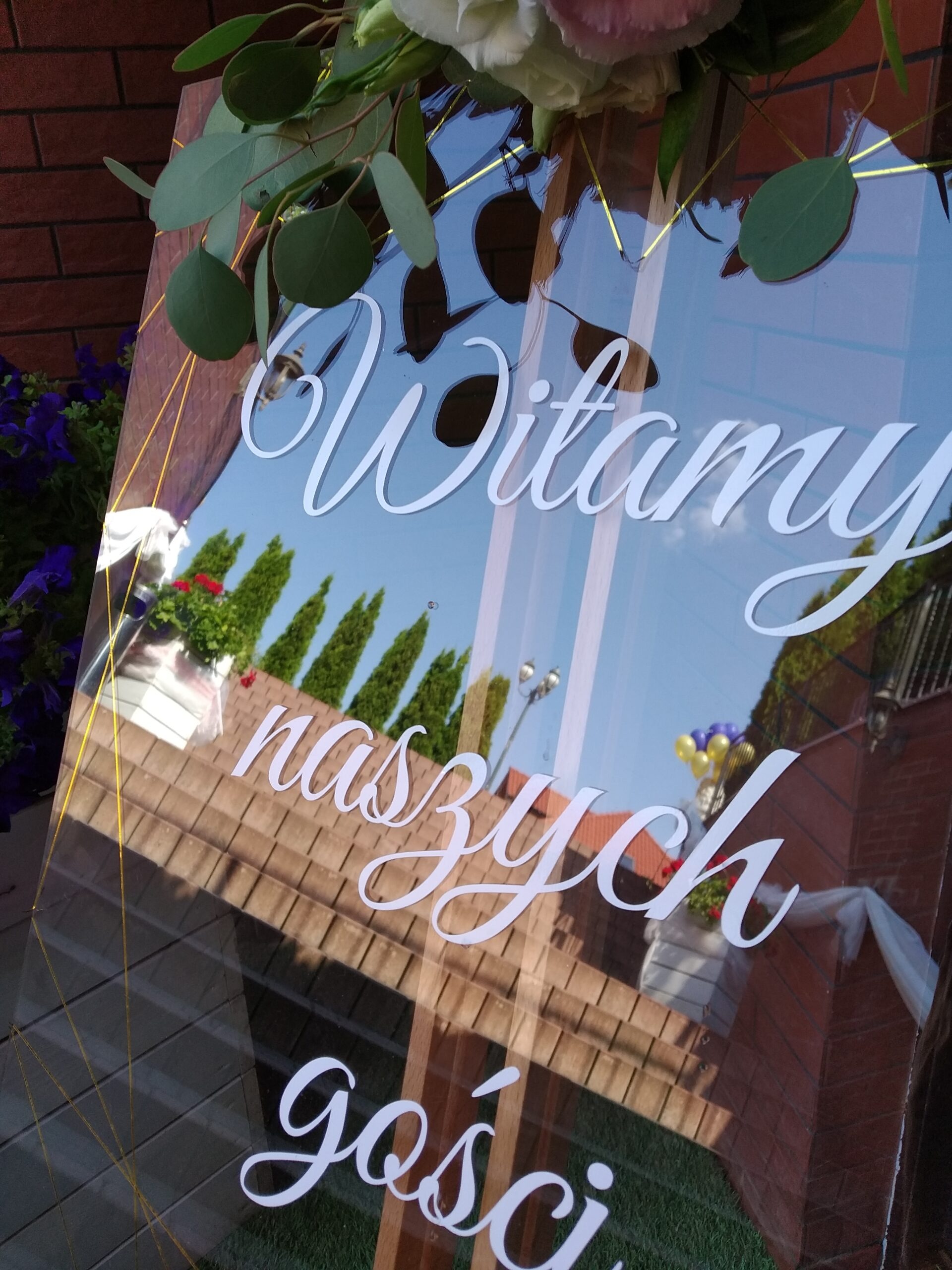 Tablica transparentna może posłużyć jako tablica rozmieszczenia stołów gości lub jako tablica powitalna.